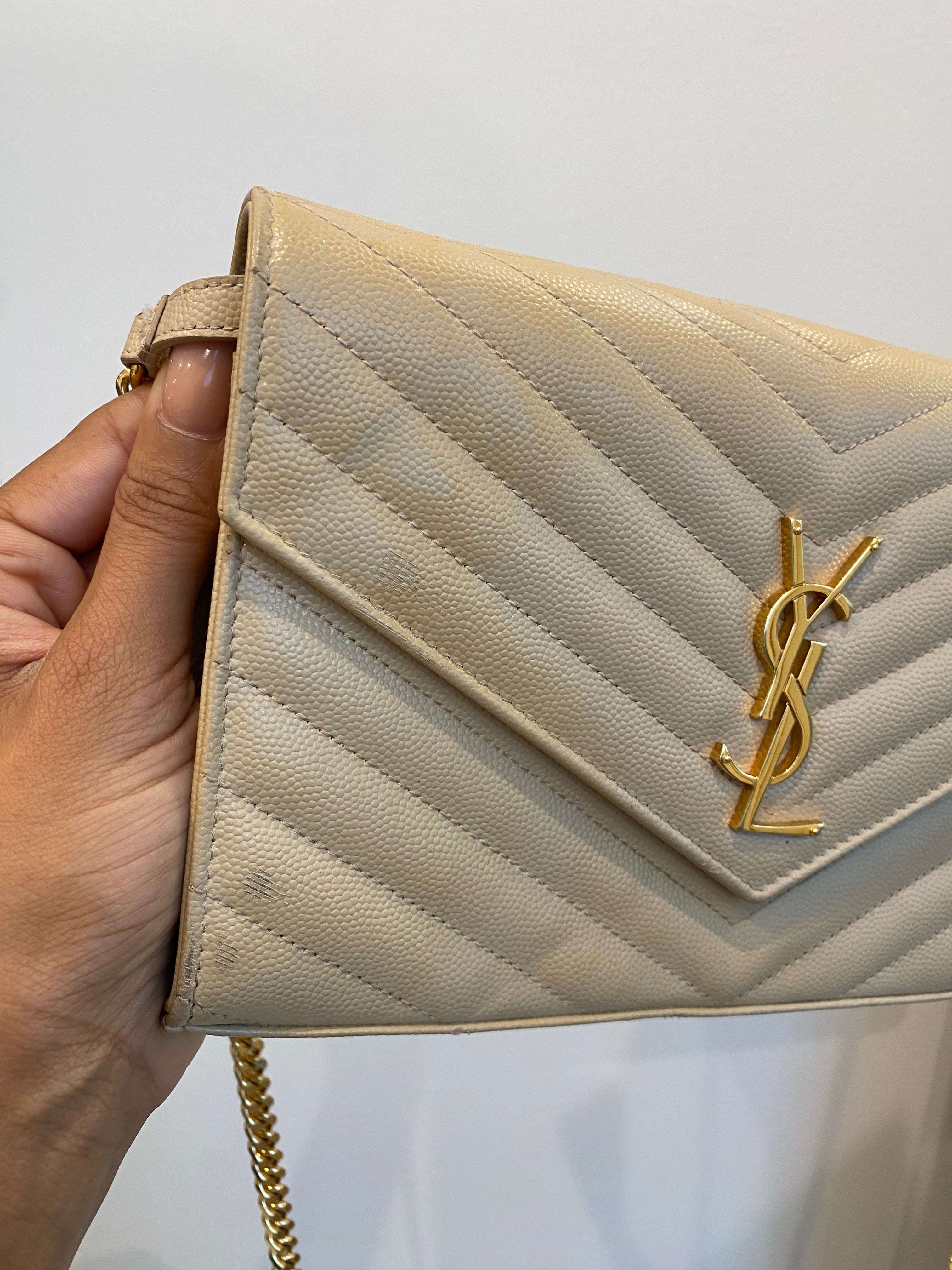 She is discolored. I've heard of people painting over the purses or adding bling ect. If that's something you are into the gold hardware is still 10/10